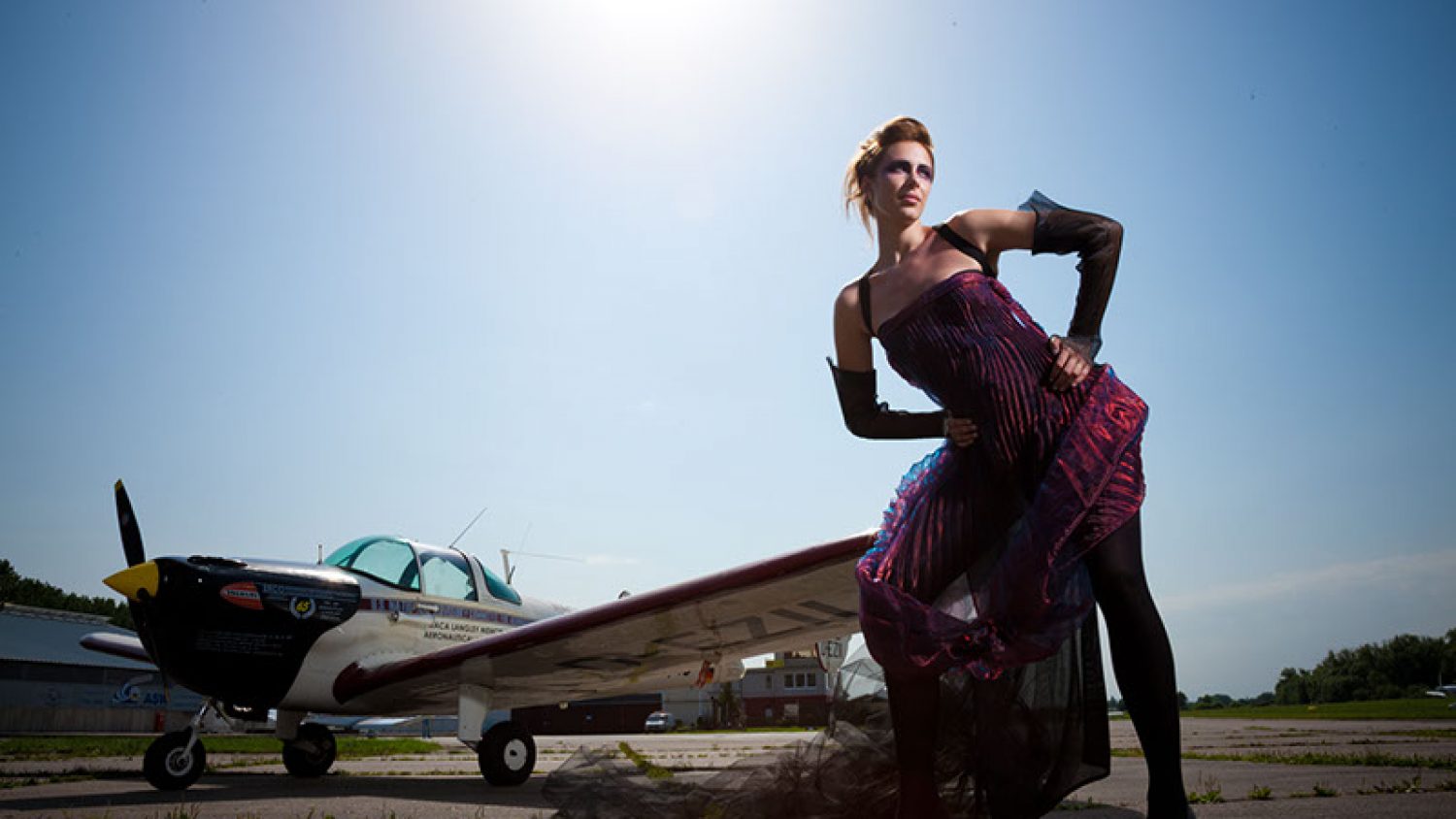 Während morgens noch ein laues Lüftchen die eine oder andere Dekowolke vor sich her schaukelte wurden unsere vier Modelle in die Maske zu Carina, Katrin und Suzy geschickt. Die Jungs kümmerten sich dann um schweres Equipment: 6 Hensel Portys und die dazugehörigen Blitzköpfe und Lichtformer wollten auf 4 Sets verteilt werden. Außerdem mussten Hubschrauber positioniert werden, 2 Ercoupes auch dekorativ geparkt werden, eine große Piper Malibu Mirage aus dem Hangar gerollt werden … es gab genug zu tun.
